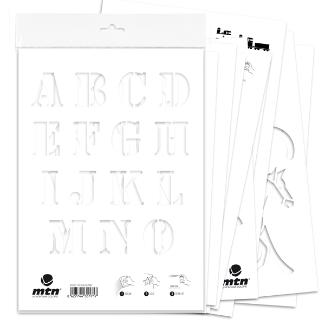Plantillas reutilizables de cartón de alto gramaje que aporta gran resistencia y durabilidad. Adecuadas para todo tipo de decoraciones en interior y exterior.